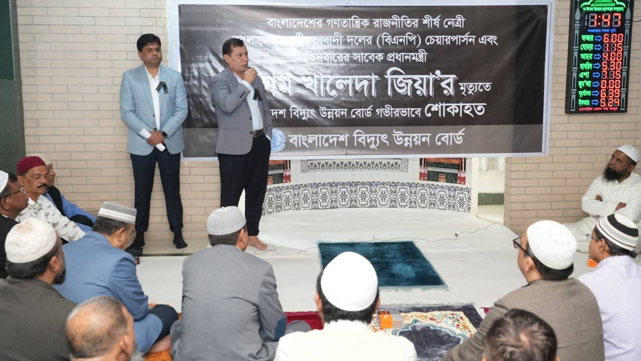 সাবেক প্রধানমন্ত্রী বেগম খালেদা জিয়ার রুহের মাগফেরাত কামনায় বিদ্যুৎ ভবনের কেন্দ্রীয় মসজিদে বিশেষ দোয়া মাহফিলের আয়োজন করে বাংলাদেশ বিদ্যুৎ উন্নয়ন বোর্ড (বিপিডিবি)।শুক্রবার (২ জানুয়ারি) এক বার্তায় প্রতিষ্ঠানটি জানায়, বৃহস্পতিবার (১ জানুয়ারি) বাদ জোহর অনুষ্ঠিত এ দোয়া মাহফিলে প্রধান অতিথি হিসেবে উপস্থিত ছিলেন বিউবো চেয়ারম্যান প্রকৌশলী মো. রেজাউল করিম।