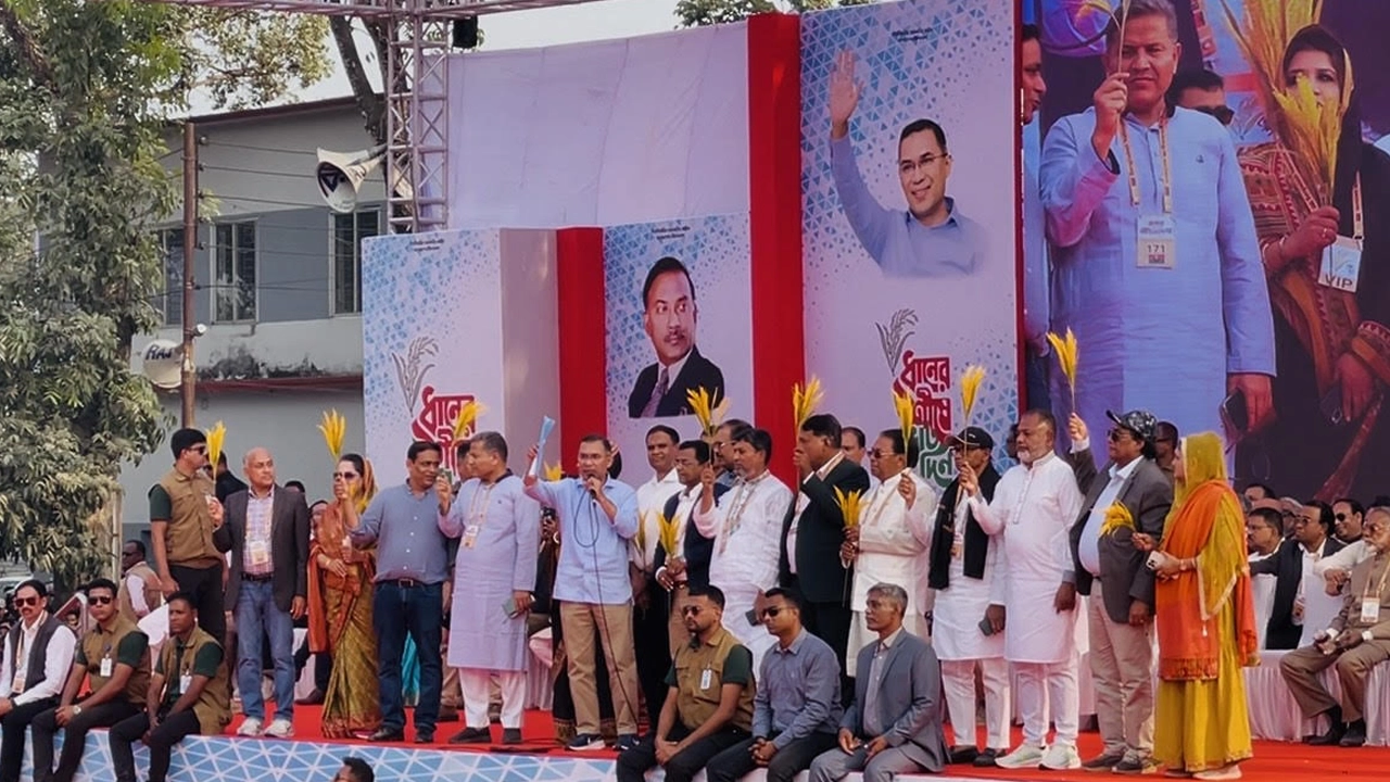 এর আগে দুপুর ২টা ৫৫ মিনিটে তারেক রহমান জনসভাস্থলে আসেন। তিনি বরিশাল থেকে হেলিকপ্টারে চড়ে ফরিদপুর স্টেডিয়ামের হেলিপ্যাডে অবতরণ করার পর শামা ওবায়েদসহ নেতারা তাকে স্বাগত জানান।